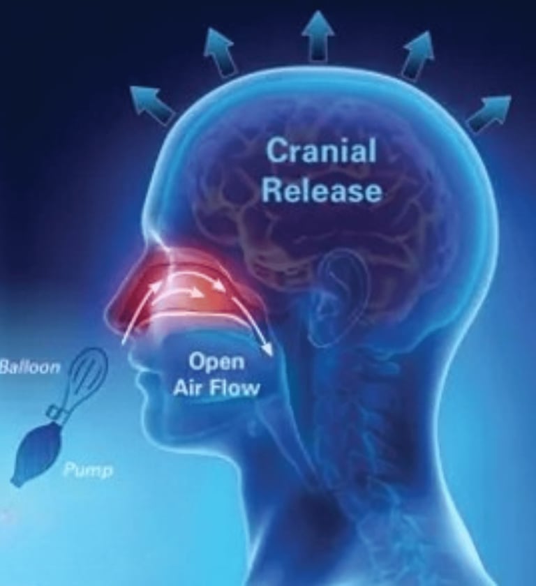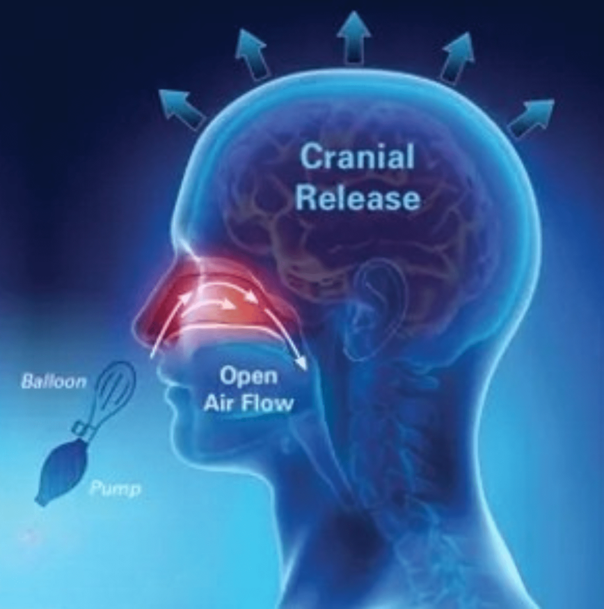 Après l’examen clinique, le praticien insère délicatement un ballonnet dans les voies nasales du patient. En gonflant ce ballonnet, une pression est appliquée, permettant de libérer les sutures crâniennes et de restaurer leur mobilité naturelle.